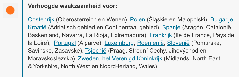 Een oranje zone wilt zeggen dat je tijdens je bezoek, maar ook in de groene zone, de Coronamaatregelen zeker moet respecteren en je bij terugkomst het aangeraden is om je te laten testen op het Coronavirus. Ook is een quarantaine van 14 dagen sterk aangereden. Het is niet verboden om naar een oranje zone te reizen en de grenzen met Frankrijk zijn (nu) nog steeds geopend.