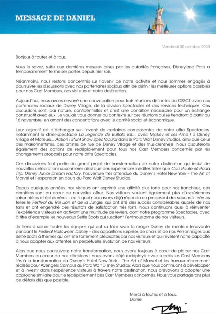 Cast Members die momenteel helpen met deze shows worden gerustgesteld. "We doen er alles aan om een nieuwe plaats voor hun te vinden", eindigt Delcourt.