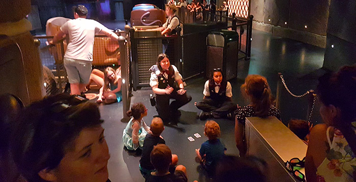 Een paar enthousiaste Cast Members verzamelde de kinderen die stonden te wachten en toverde een spel kaarten naar boven. Ze vermaakte deze kinderen met enkele goocheltrucs. "Een leuk initiatief", vertelde een ouder, "normaal staat iedereen te klagen en te zuchten tijdens een storing, maar nu kon iedereen meegenieten.".