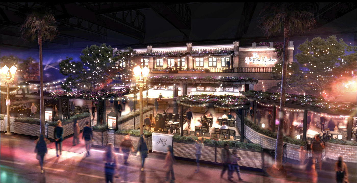 De muren zijn versierd met subtiele verwijzingen naar beroemde Hollywood-films, en de tafels zijn zo geplaatst dat je het gevoel hebt te dineren op een chique binnenplaats in Los Angeles.