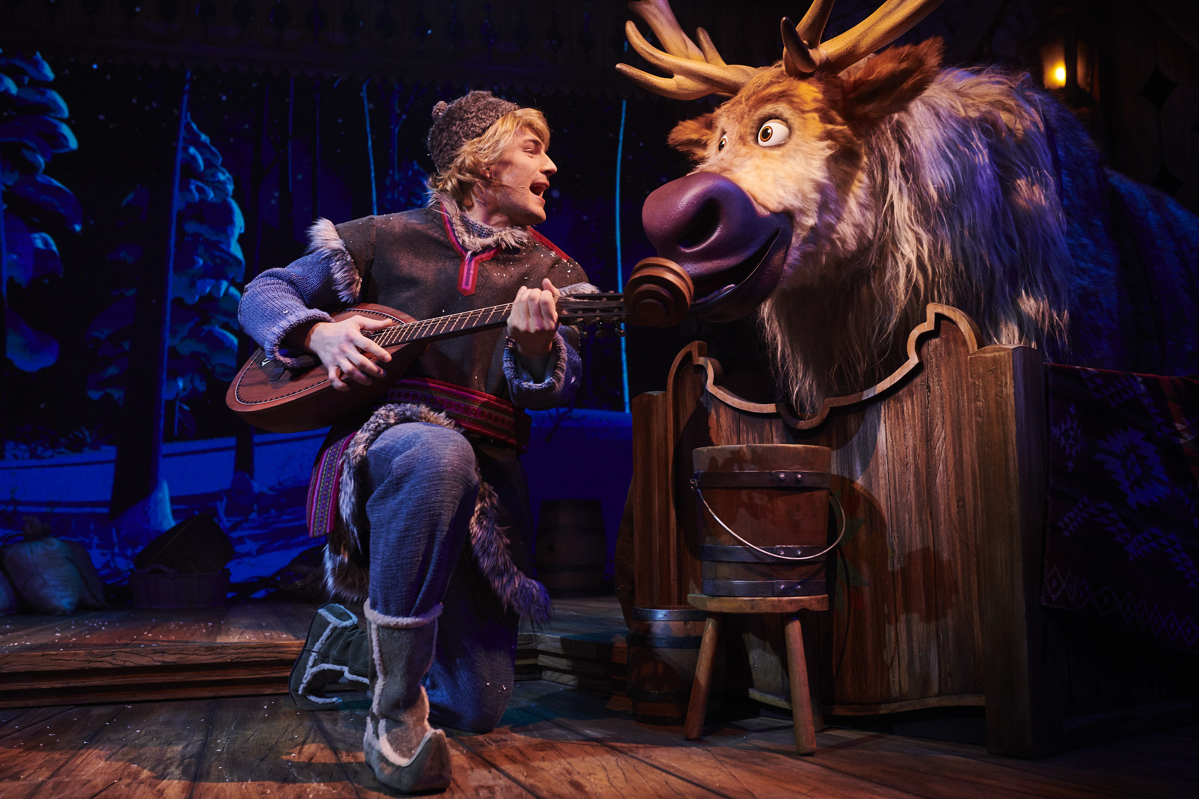 Hierna stap je binnen de eerste ruimte voor het begin van je Frozen-avontuur. Zoek beschutting voor de sneeuw, neem plaats in de comfortabele schuren naast 'Wandering Oaken’s Trading Post and Sauna' en maak je klaar om 'Reindeers are Better then People' te zingen met Kristoff en Sven, die voor de eerste keer in Disneyland Paris zijn. De show is is deels in het Frans en deels in Engels te beleven.