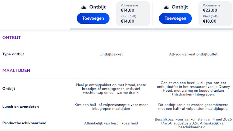 Ter vergelijking: in sommige andere Disney hotels kan een ontbijtbuffet makkelijk richting €30 tot €40 per persoon gaan.