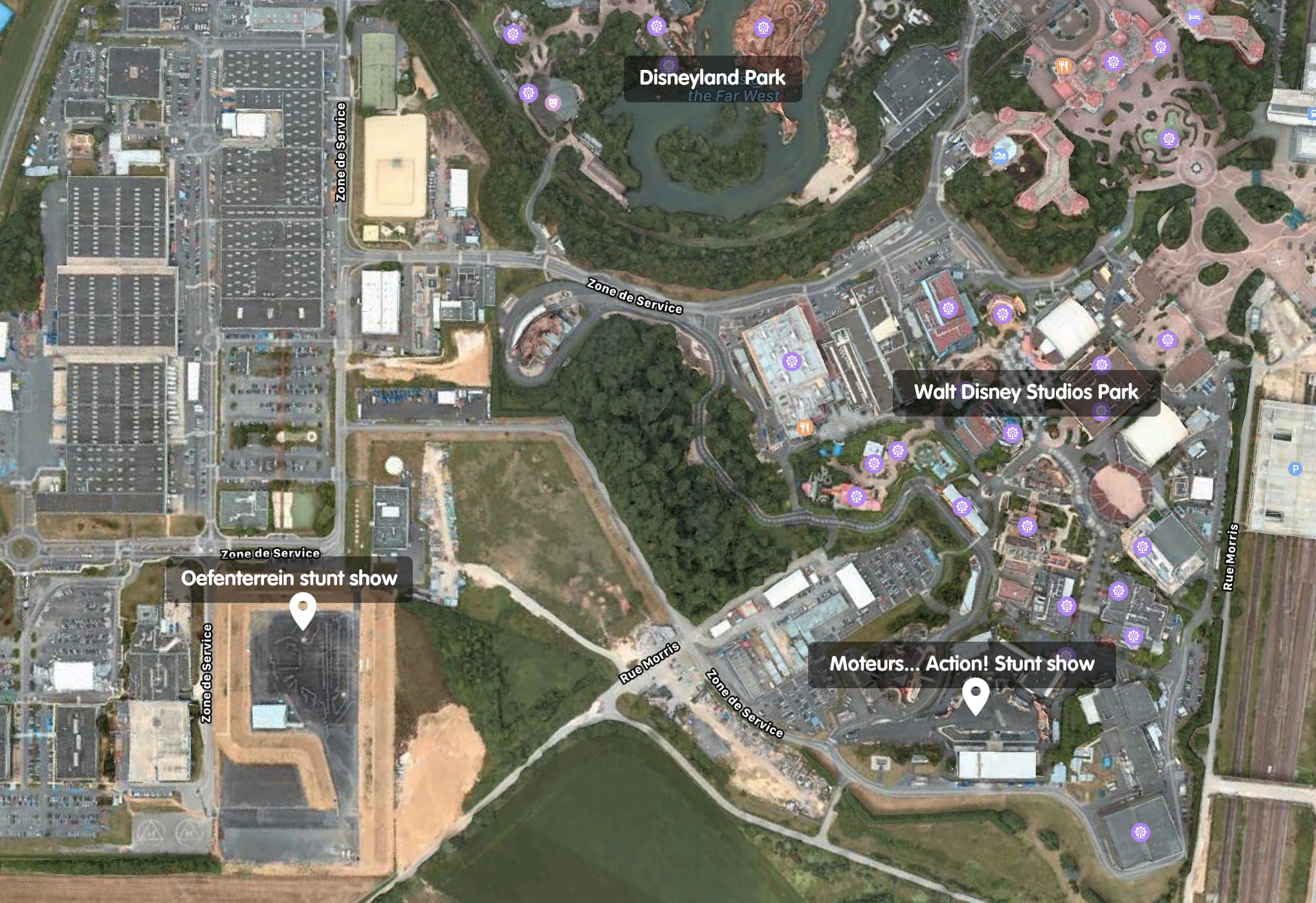 De locatie bevindt zich slechts enkele honderden meters van Disneyland Parijs. Wanneer je Apple Maps kijkt, zie je witte lijnen die het decor moeten voorstellen. Op deze manier kunnen de stuntmannen hun show tot in de puntjes voorbereiden.