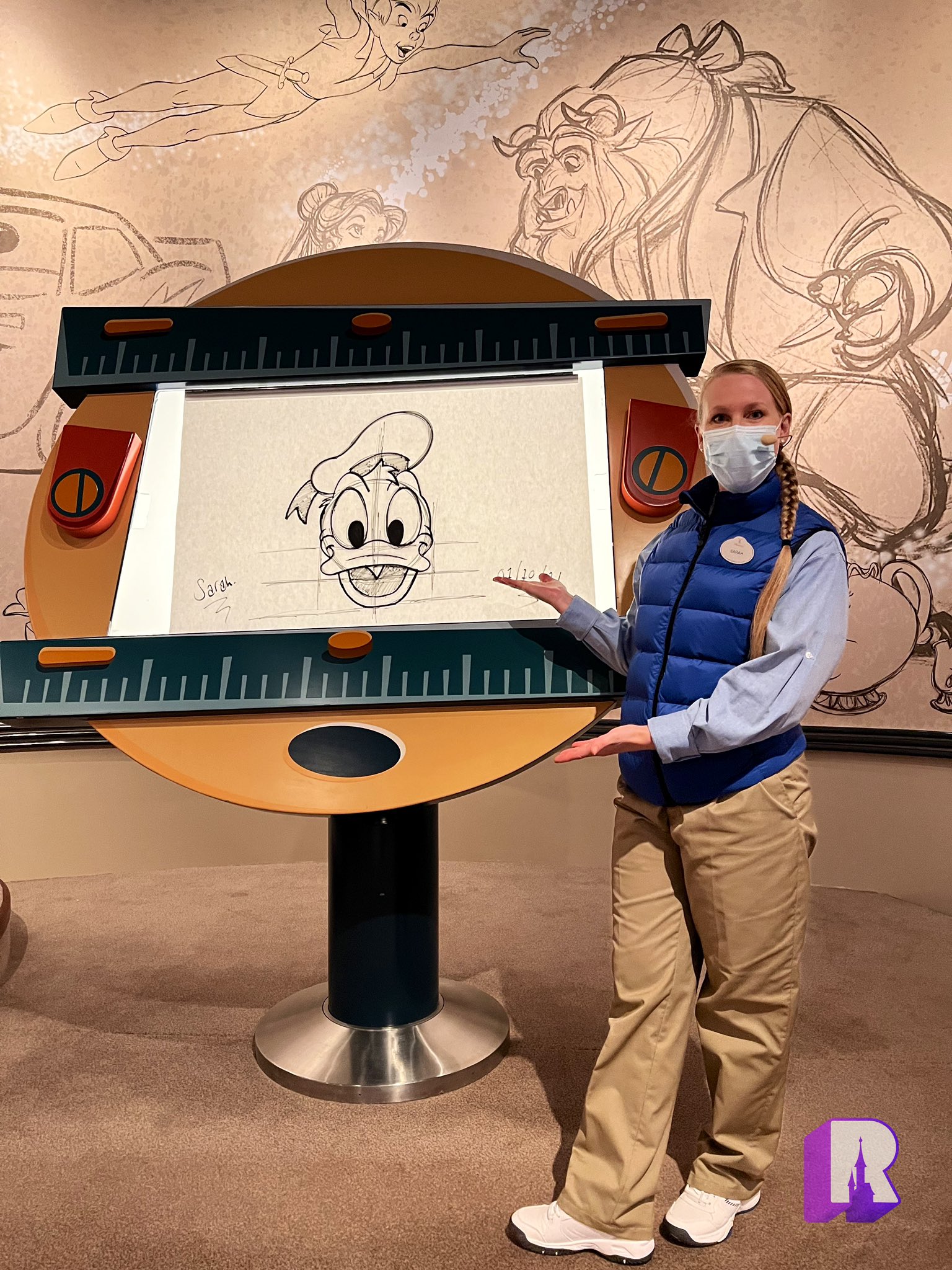 Tijdens een tekensessie mag je aan een grote tekentafel gaan zitten. Hier ligt alvast een groot blad papier klaar. Samen met een animator leer je verschillende Disney Figuren tekenen. Stap voor stap wordt de anatomie van een Disney Figuur uitgelegd en leer je ze allemaal tekenen. Elke sessie wordt een andere figuur getekend. De animator doet de uitleg in het Engels en het Frans.